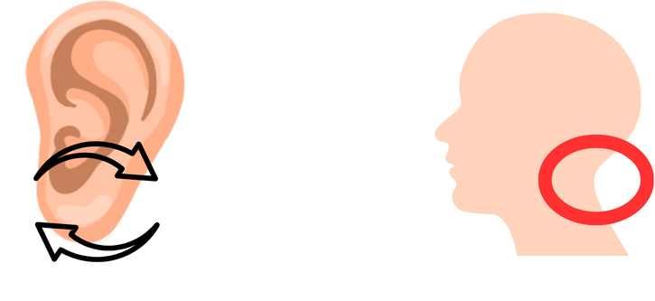 耳たぶを親指と人差し指で挟み、後ろに回す